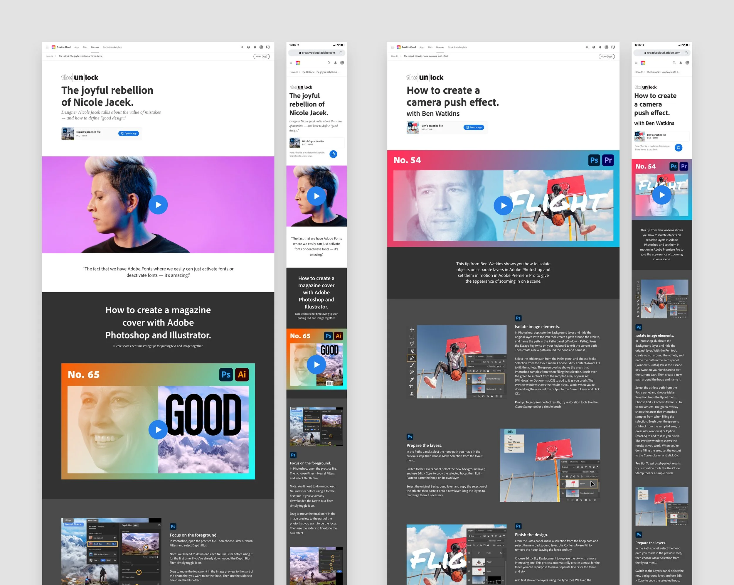 The Unlock tutorial series (phases 1–5) on Adobe Discover.